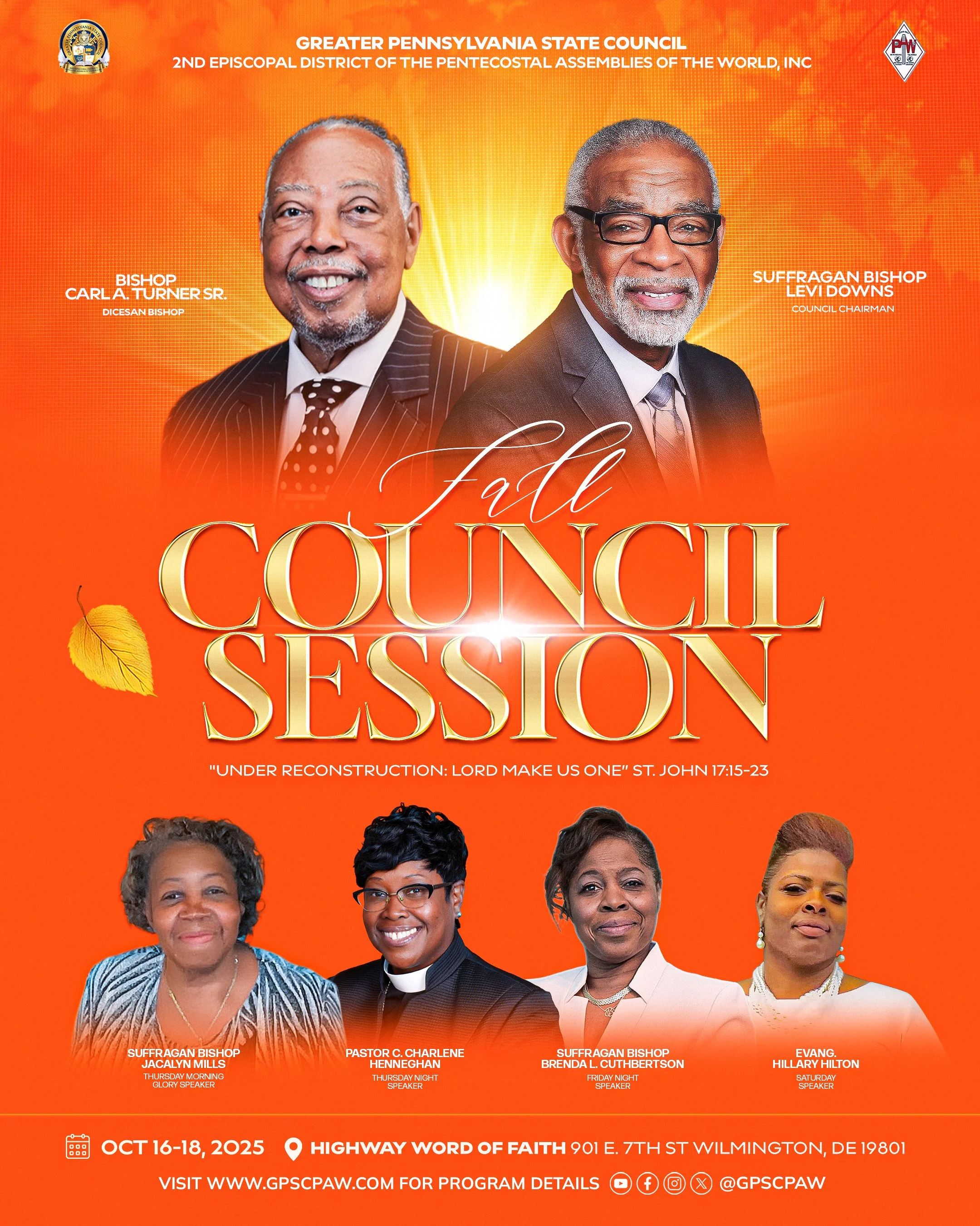 Join us in Wilmington, DE at Highway Word of Faith for our October Council.